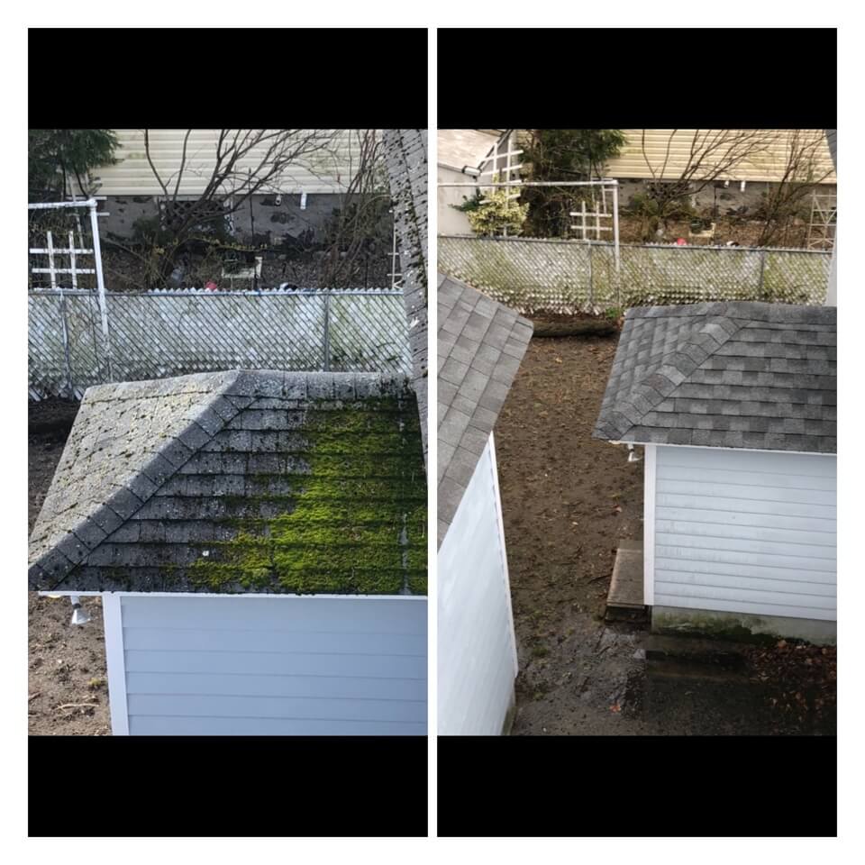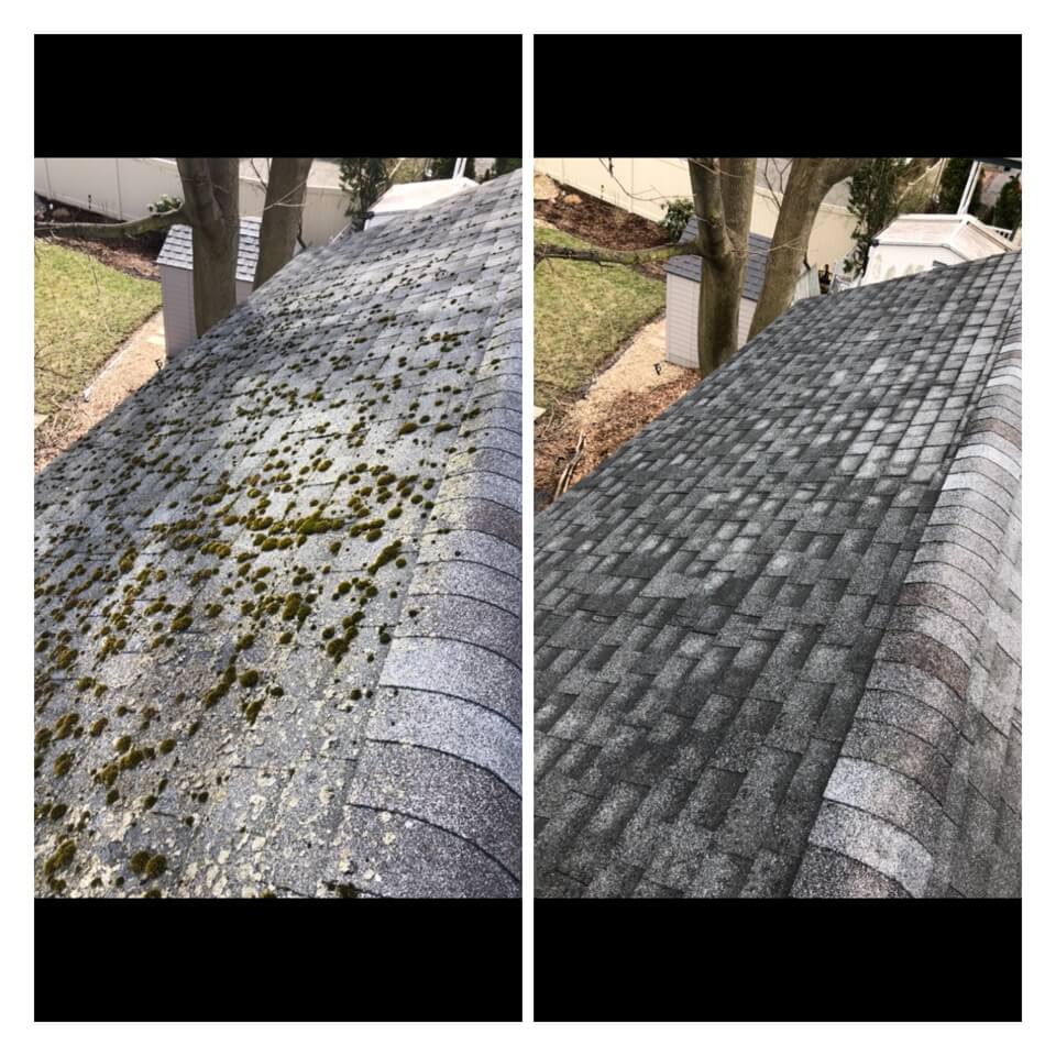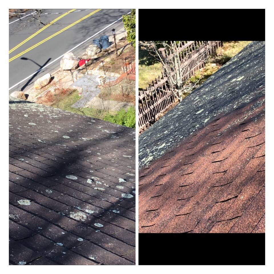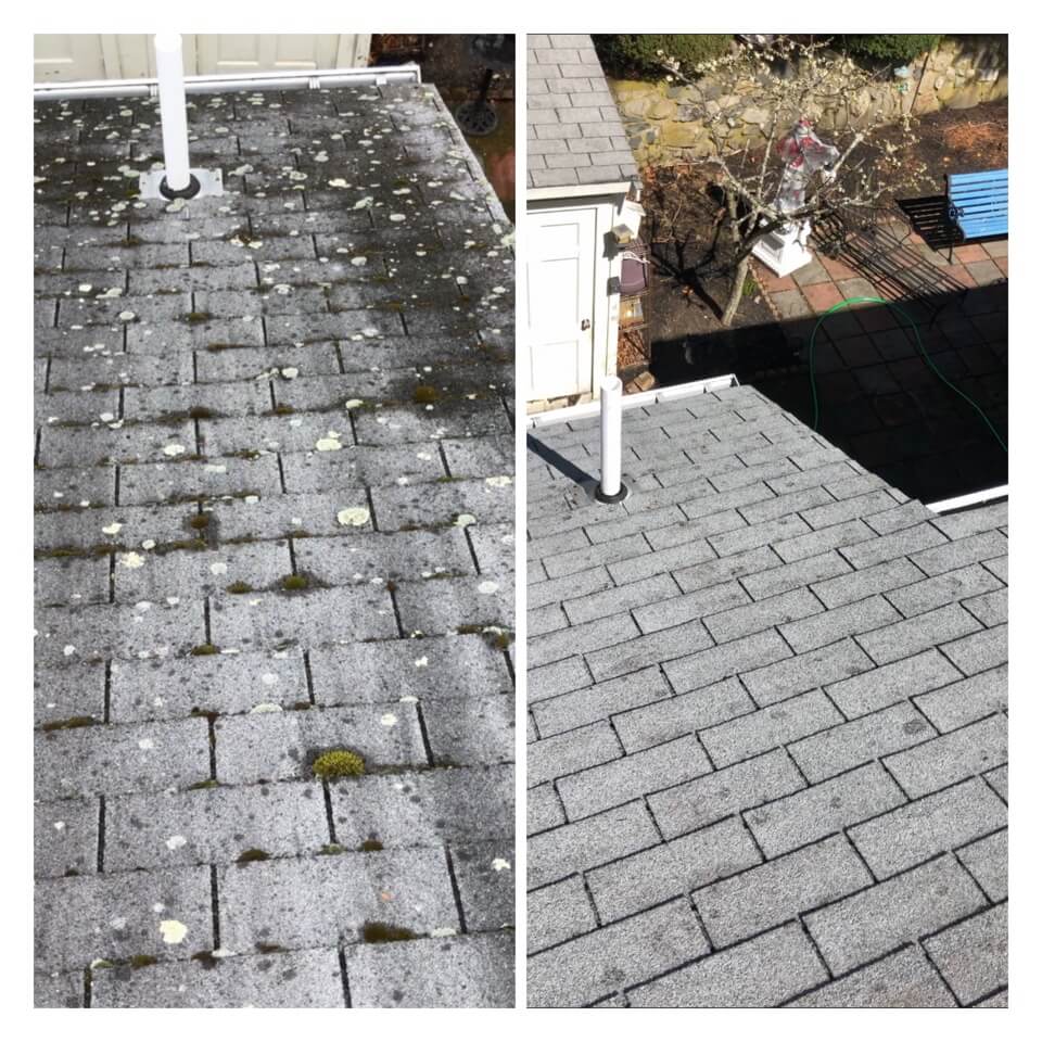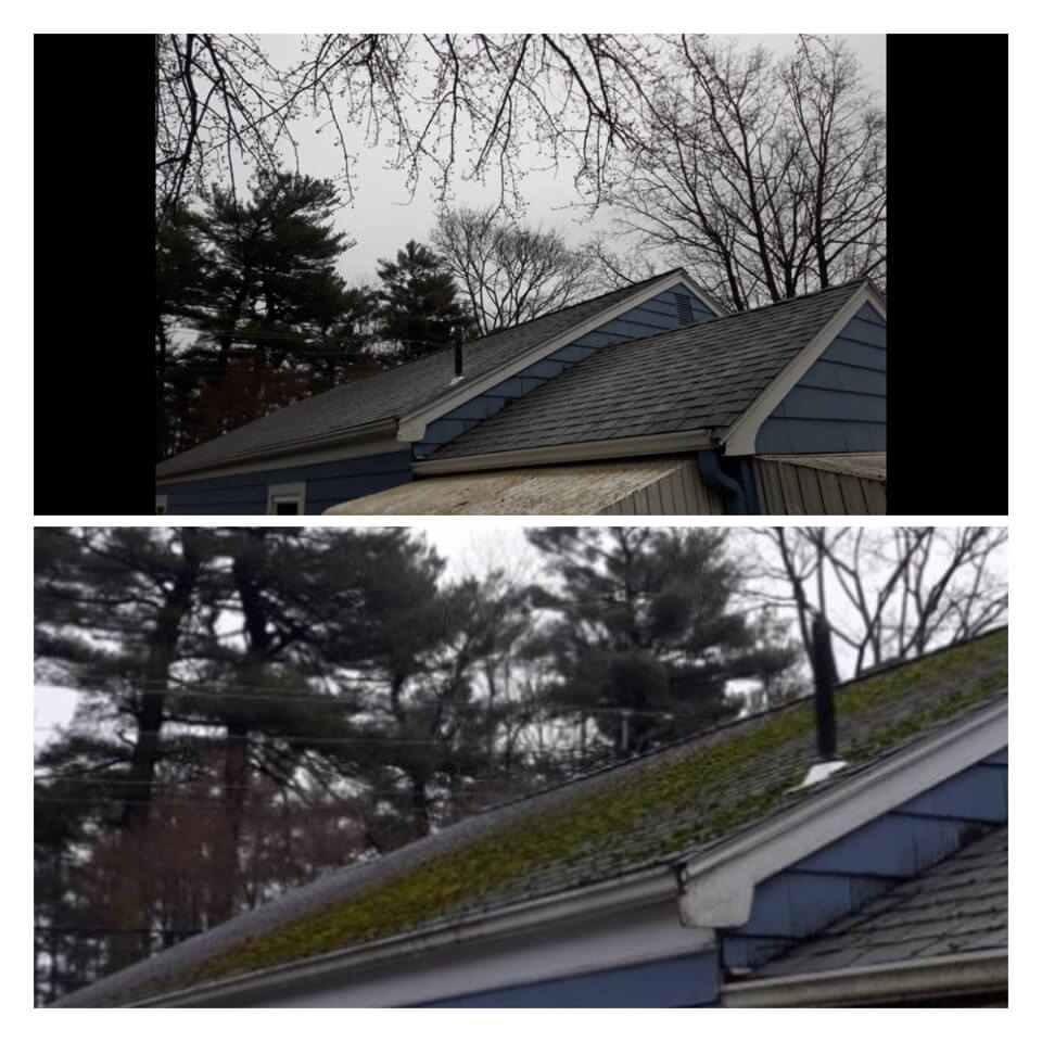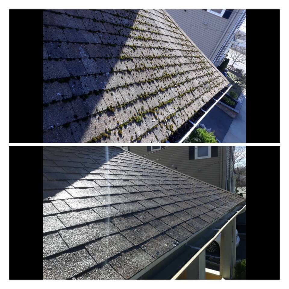 HiCleaners is the most experienced company in Chelsea, MA that deals with roof washing and roof soft washing. All of our employees are trained to recognize precise solution mixing ratios to provide you with the safest and most effective soft washing service. Roofs are a commonly neglected part of a house due to the fact that most people don’t have ladders to access it, so it is very easy to just leave it alone and forget about problems that may start to arise. Just like many home owners, discoloration and small bits of moss on a roof can be overlooked because of the misconception that it is just aesthetic. However, it isn’t just aesthetic, the moss slowly lifts the granules off the shingles which in turn shorten the life of the shingle. The moss also spreads, just like any bacteria if it is left alone for too long, it can quickly become a problem that spirals out of control. Call HiCleaners for a free quote, we only use the most advanced eco-friendly solutions and equipment to make sure the job is done right, for the safety of the employees, your plants, grass, pets, and children.